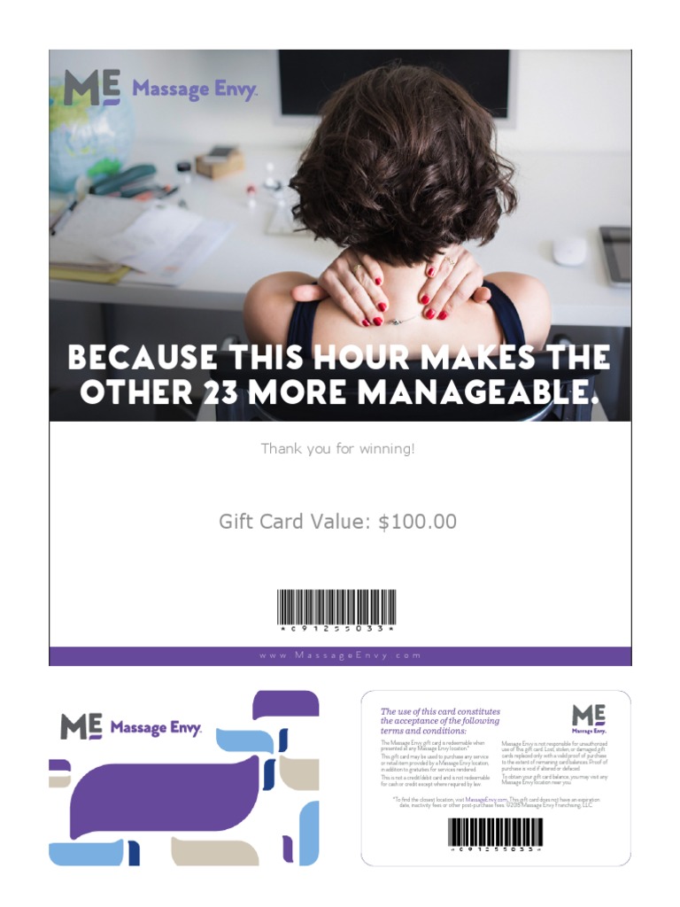 Massage envy team is available in facebook, twitter and instagram and following them through notification in these. Try setting the selling price of your massage envy gift card to at least 5% less than its current value in order to maximize your return, but ultimately the choice is yours. I was charged for gift card purchases when i was under the impression that i was transferring massages. A massage envy spa gift card makes a thoughtful gift. Buy massage envy gift cards to save on spa and massage services at over 750 us locations.